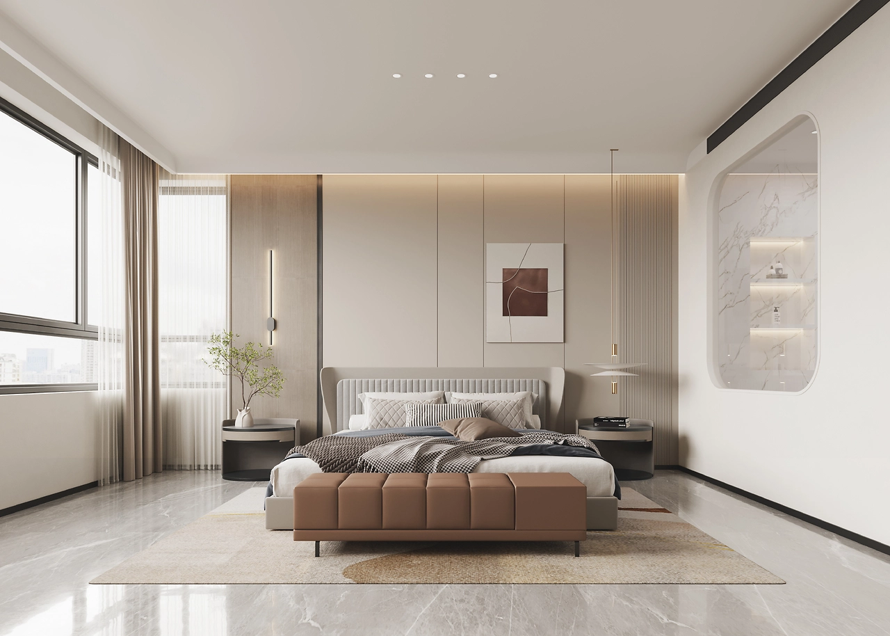 Hạng mục này bao gồm việc lựa chọn và thi công giường ngủ, tủ quần áo, bàn làm việc (nếu cần), và ánh sáng. Phải chú ý đến việc chọn màu sắc, chất liệu và bố trí để tạo cảm giác ấm áp và thư giãn.